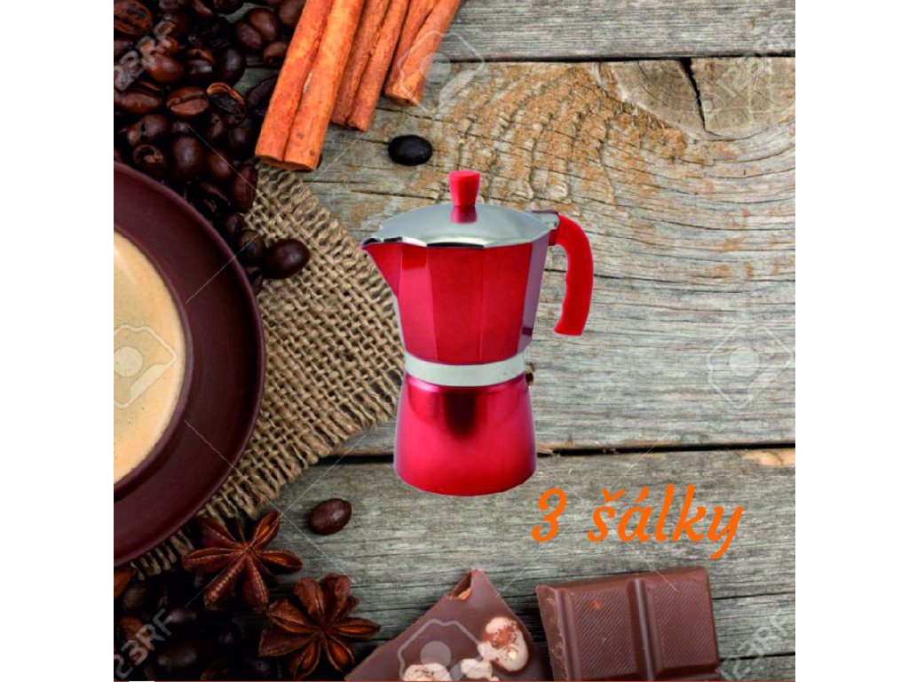 Moka Express kávovar červený pre 3 šálky PERFECT HOME