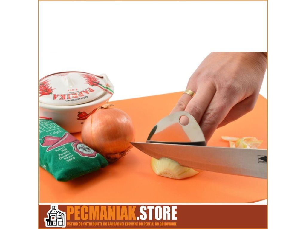 Úlohou chrániča je chrániť špičky prstov pred ostrou čepeľou noža. Používa sa pri príprave cibule ako aj inej zeleniny, ovocia či rôznych druhov mäsa. Chránič z nerezovej ocele si jednoducho nasadíte na prst a môžete začať krájať. Je vhodný pre pravákov aj ľavákov. Materiál: nerezová oceľ Dĺžka: 6,5 cm Šírka: 6,5 cm Výška: 2 cmBuďte prvý, kto napíše príspevok k tejto položke.