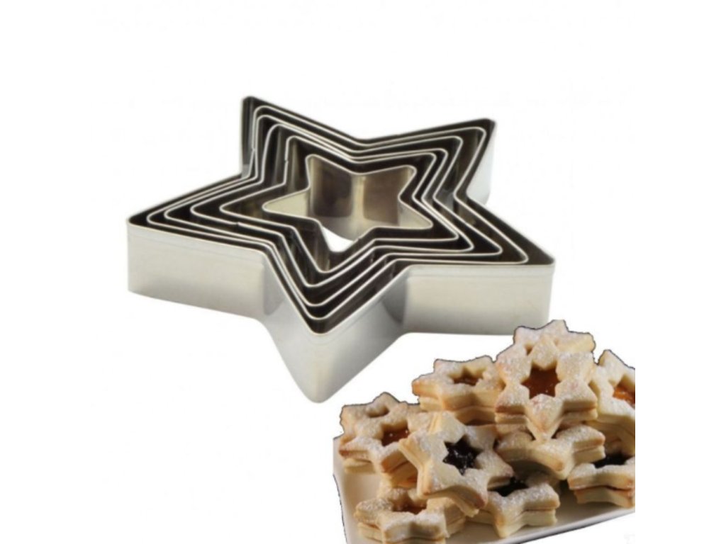 Formičky sú určené na vykrajovanie suchého pečiva. Sada obsahuje 6 formičiek v tvare hviezdy v rôznych veľkostiach. Vyrobené sú z pocínovaného plechu.