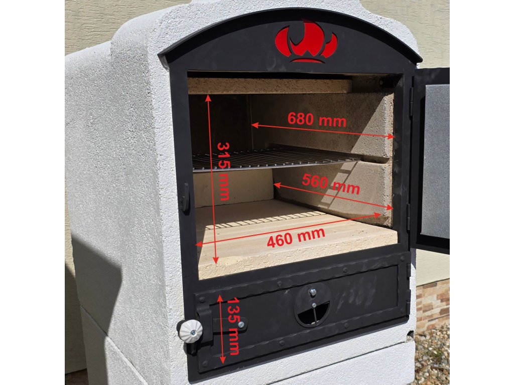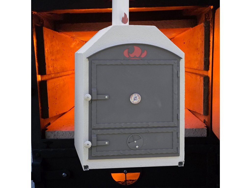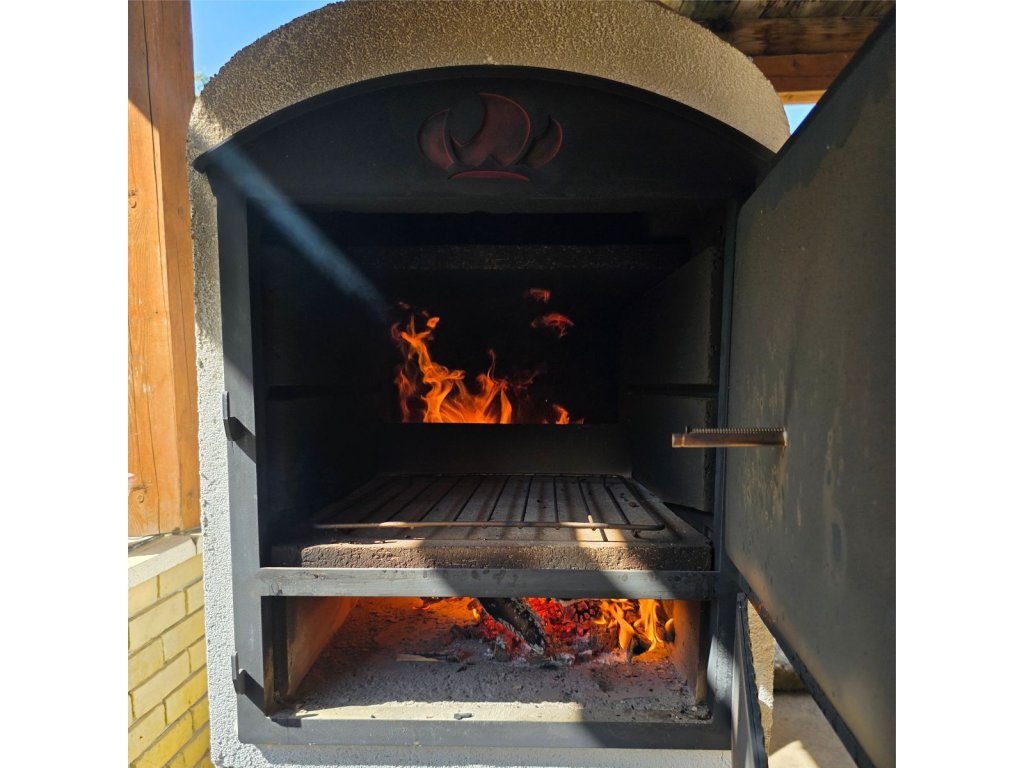Súčasťou pece je zvlášť plocha na pečenie a ohniskové dvere s možnosťou regulácie vzduchu.