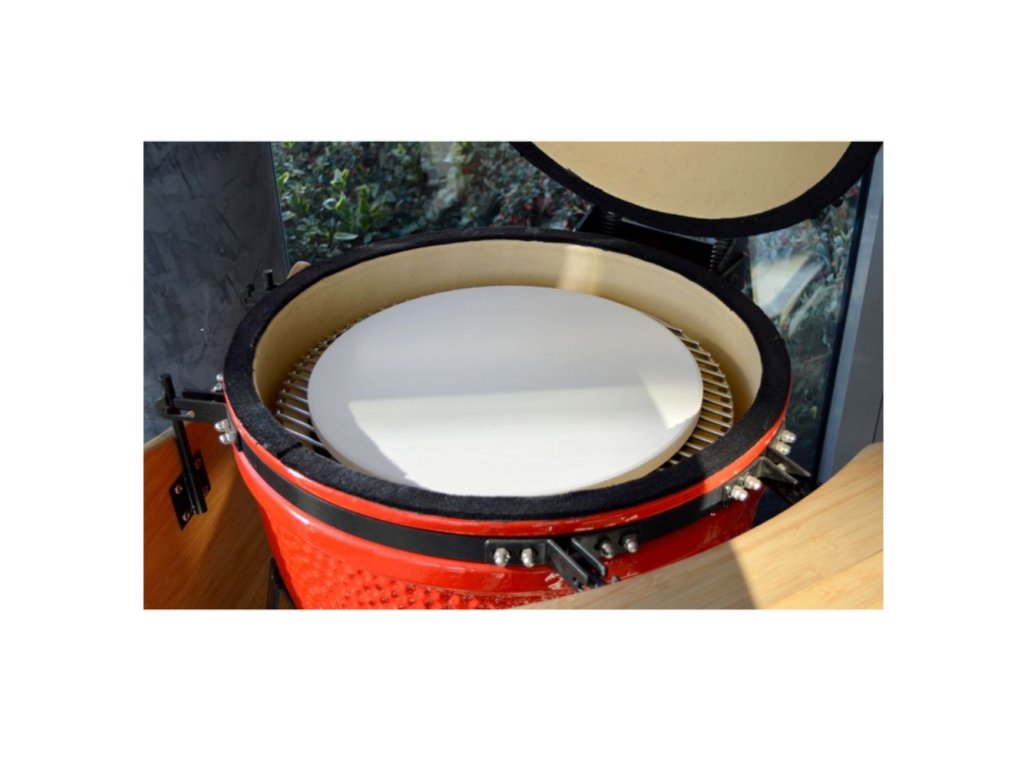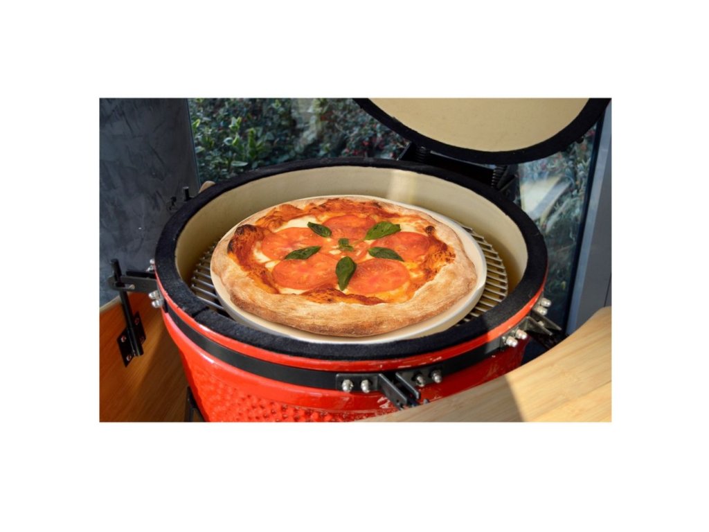 S použitím pizza kameňa upečenie v keramickom grile Kamado pizzu, chleba alebo koláč.