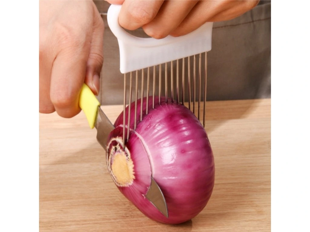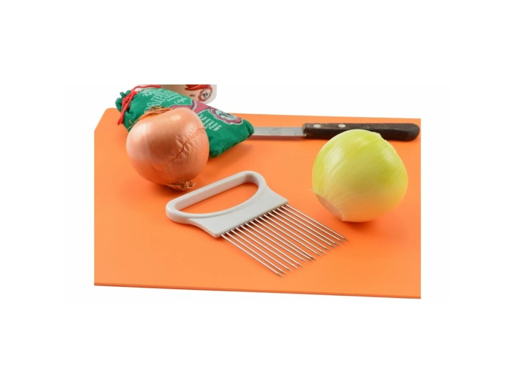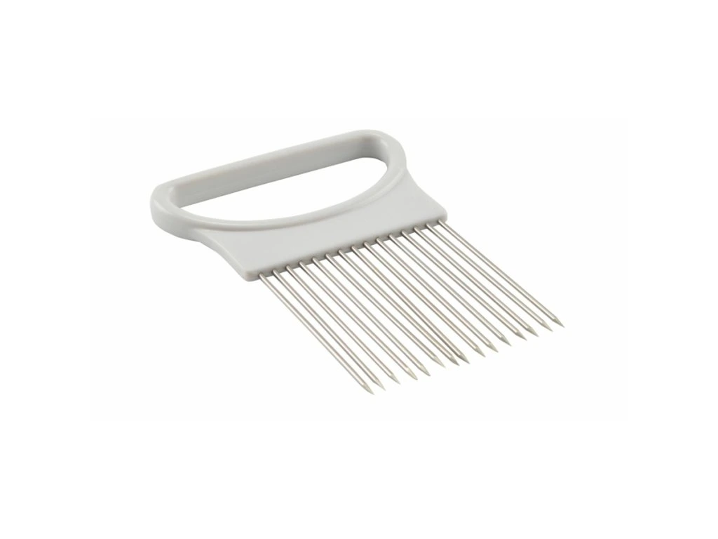 Držiak na krájanie cibule . Držiak na krájanie cibule Vám zaručí na jemno nakrájanú cibuľu bez námahy. Materiál: nerez, plast. Výška: 11 cm Šírka: 8 cm Váha: 30 gDodatočné parametre