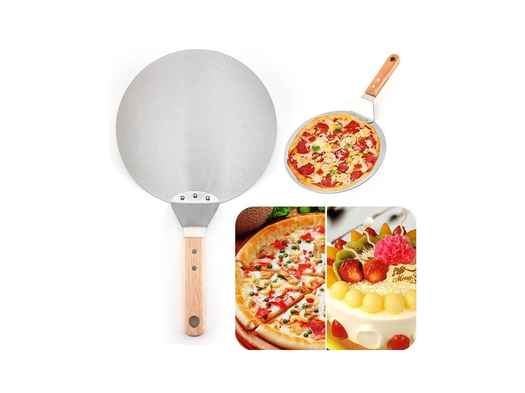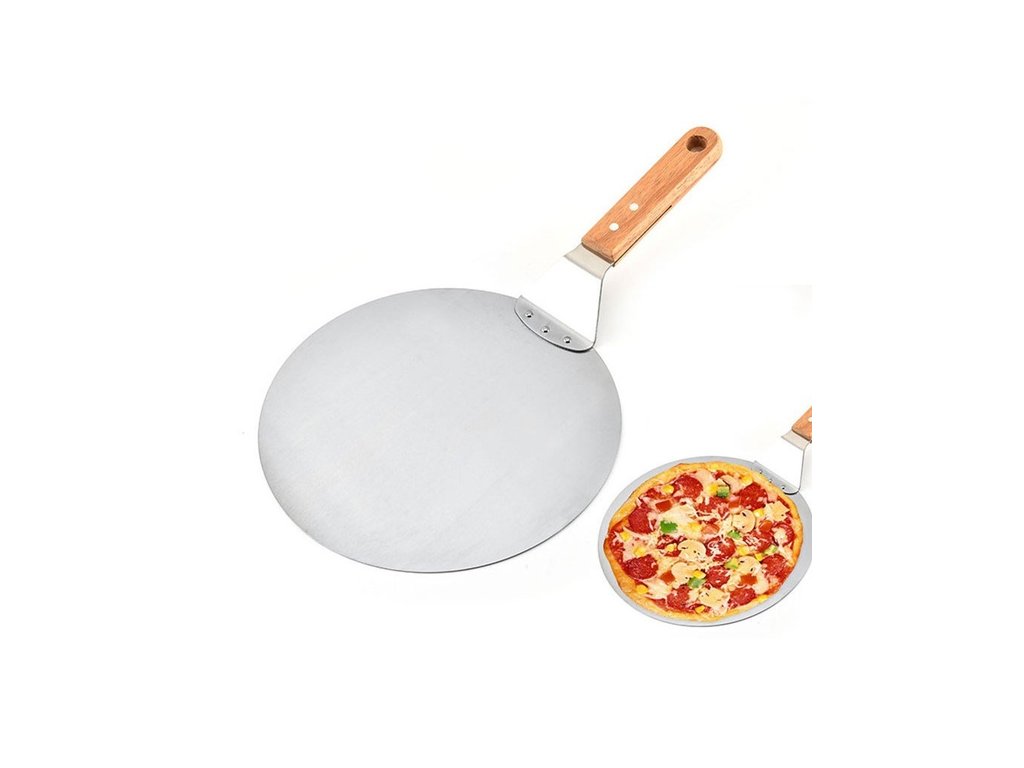 Nerezová nerezová guľatá lopata na pizzu, drevená rukoväť, guľatá torta, náradie na pečenie. Praktický pomocník na výrobu domácej pizze. Vďaka naozaj pevnej a odolnej konštrukcii môžete lopatu využívať v akejkoľvek gastronomickej prevádzke mnoho rokov. Lopata je určená na bezpečné a rýchle sádzanie a vybratie pizze z pece. dĺžka 480 mm diameter 305 mm materiál: nerez, drevoDodatočné parametre