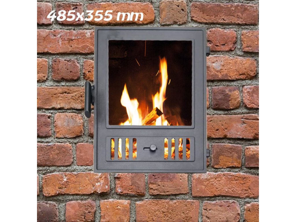Liatinové krbové dvierka s reguláciou, so sklom a zatesnené šnúrou. Sú vhodné do kachľových pecí alebo do krbov.