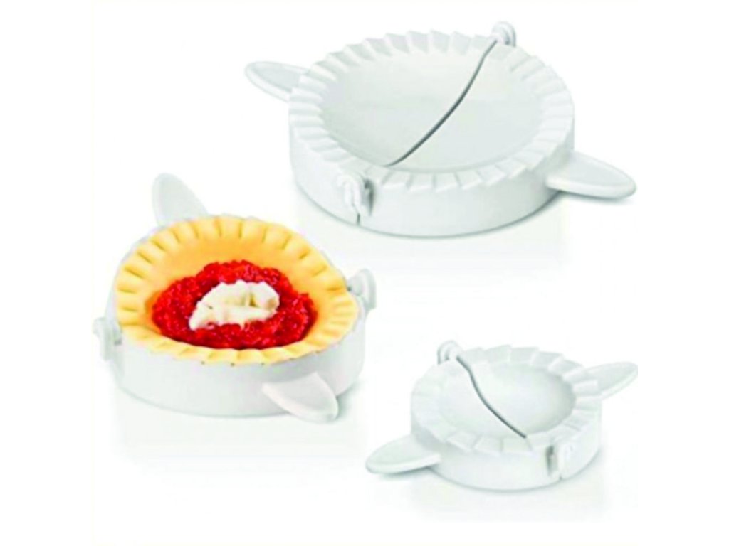 Máte radi plnené šatôčky, kapsičky? S touto formičkou na pečivo vám pôjde práca od ruky. Zjednodušte si čas strávený v kuchyni! Táto super vychytávka vám nesmie doma chýbať. Použitie je jednoduché. Rozvaľkajte si cesto, potom vykrojte kolieska pomocou formičky. Koliesko si dáte do formičky a naplníte (zeleninová zmes, mäso, ovocie) Formičku sklopíte k sebe a šatôčka je hotová. Materiál: plast Priemery: 10 cm, 8 cm, 6 cm Výška: 1,7 cm Váha: 120 g Obsah balenia: 3x formičkaDodatočné parametre