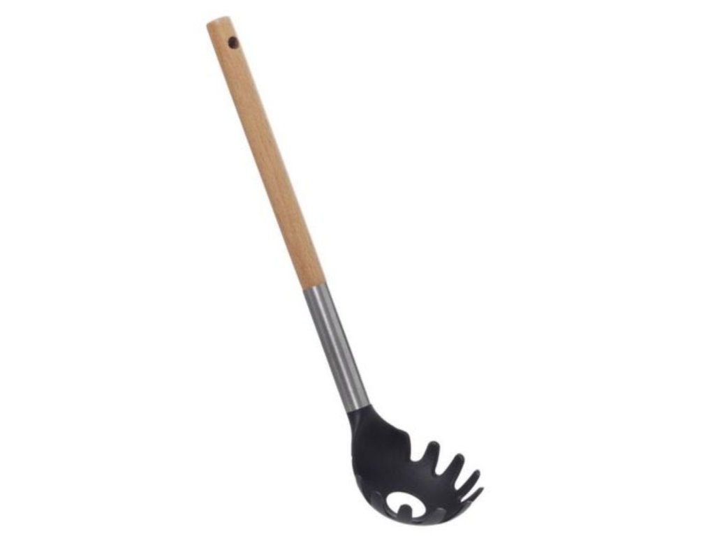 Pomocou plastovej naberačky na špagety vám pôjde servírovanie cestovín ako po masle. Špecificky tvarovaný okraj bezpečne zadrží unikajúce klzké cestoviny. Naberačku môžete použiť aj k vyloveniu väčších kusov surovín z oleja, vývaru či vody. Materiál: Drevo, plast, nerez Dĺžka: 32,5 cm Hlava naberačky: 8 cm Rukoväť: 24,5 cmBuďte prvý, kto napíše príspevok k tejto položke.