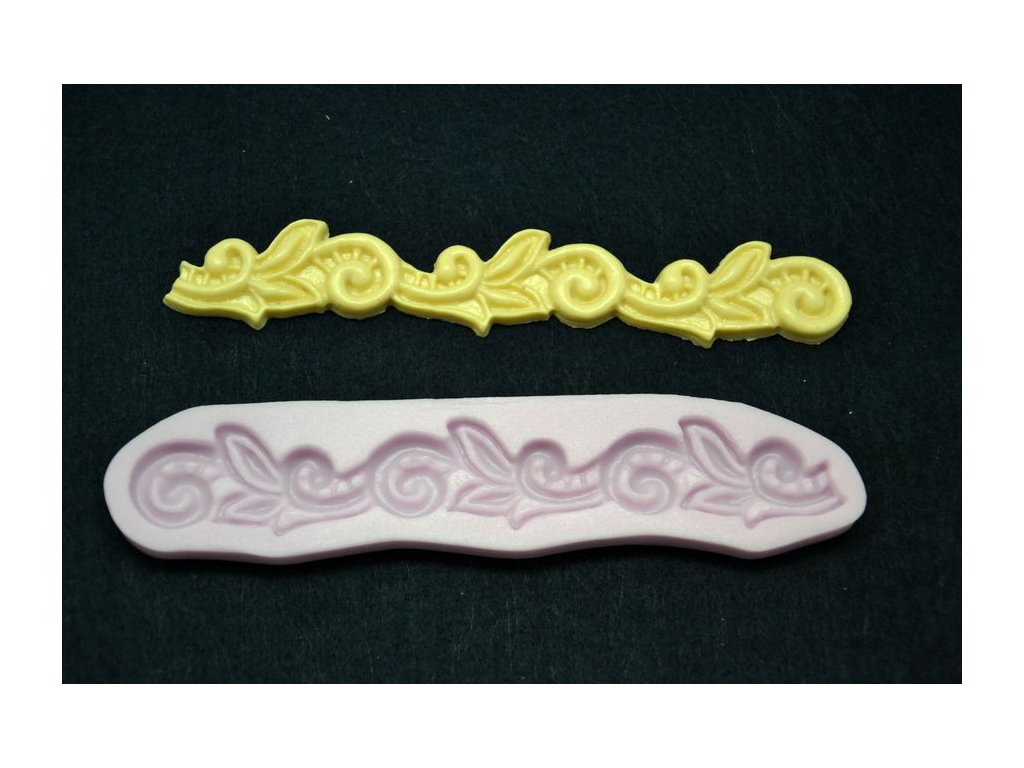 Silikónová forma – ornament – veľmi elastická, vhodná na výrobu dekoratívnych polotovarov z fimo hmoty, samotvrdnúcej hmoty, keramickej hliny, marcipánu atď. Mnohonásobné použitie.
