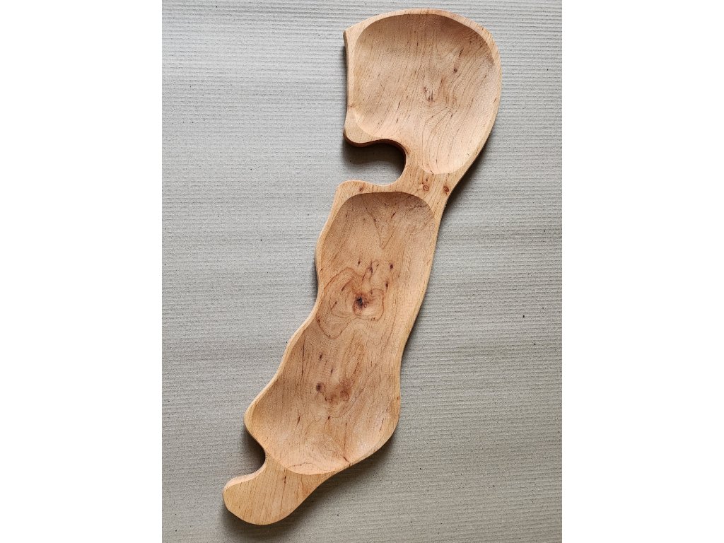 Servírovací podnos obsahuje 2 oddelené priehlbiny na pochutiny a prílohy k jedlu. Servírovací podnos z prírodného hladkého dreva na servírovanie pochutín.